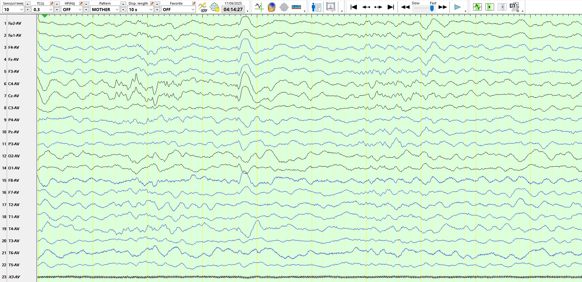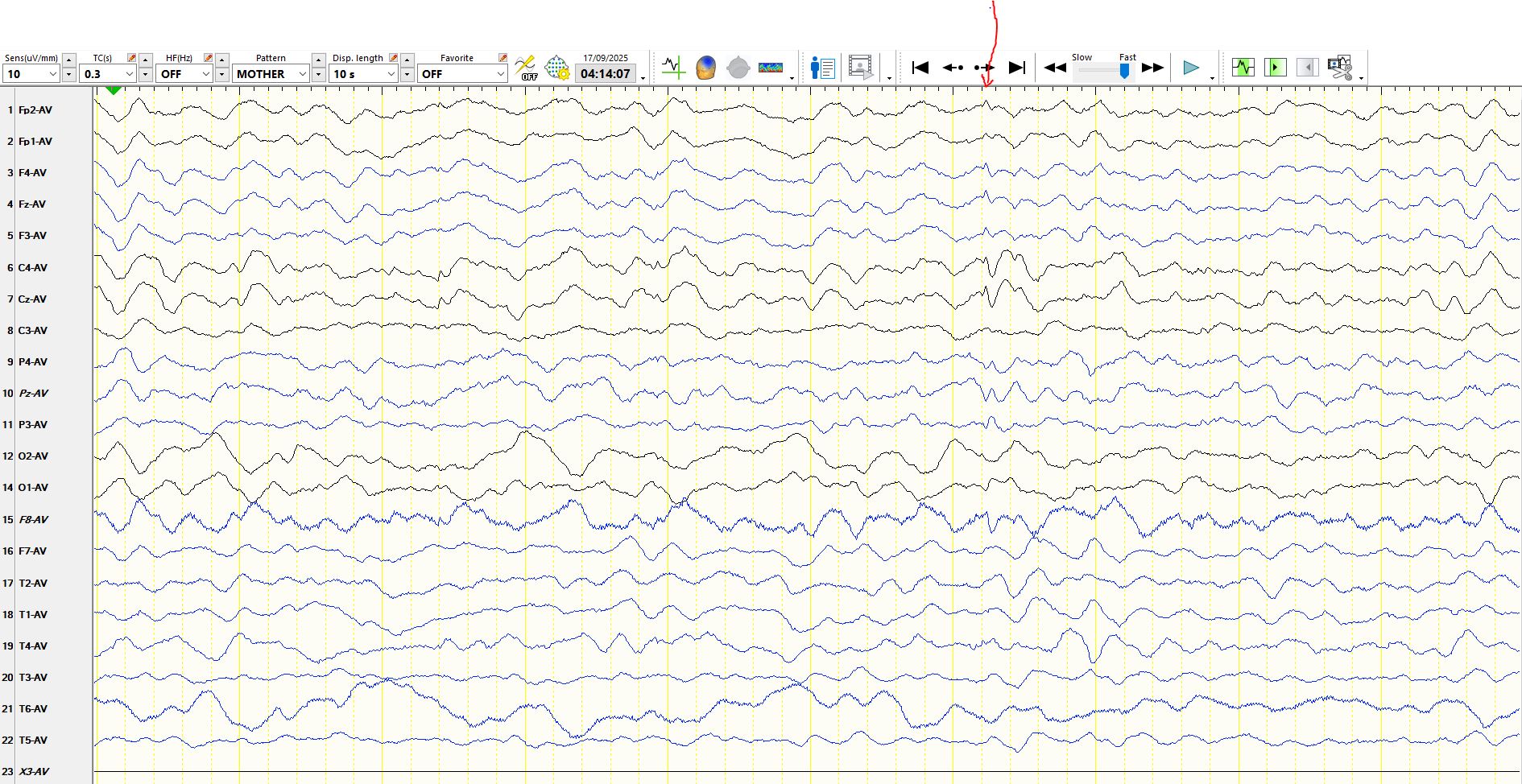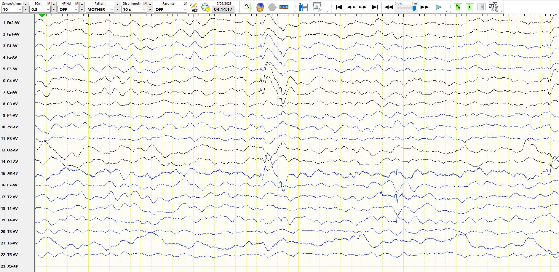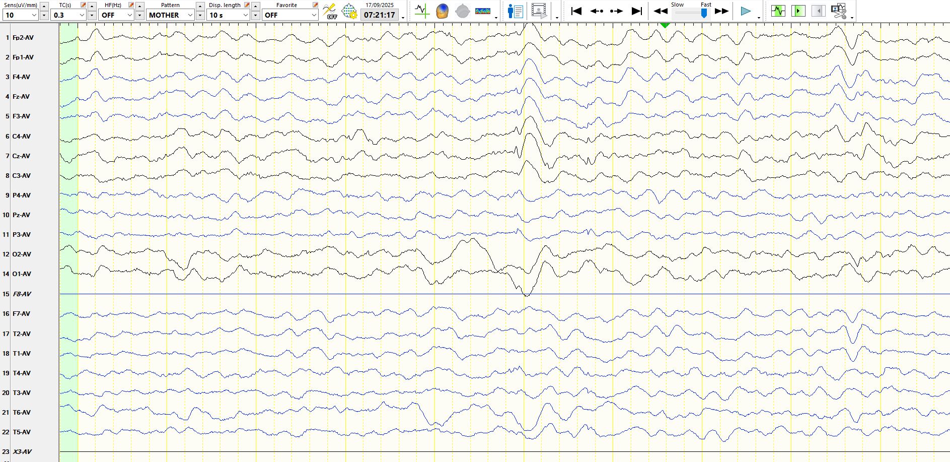 The EEG is normal during sleep. The apiculate waves represent vertex waves.