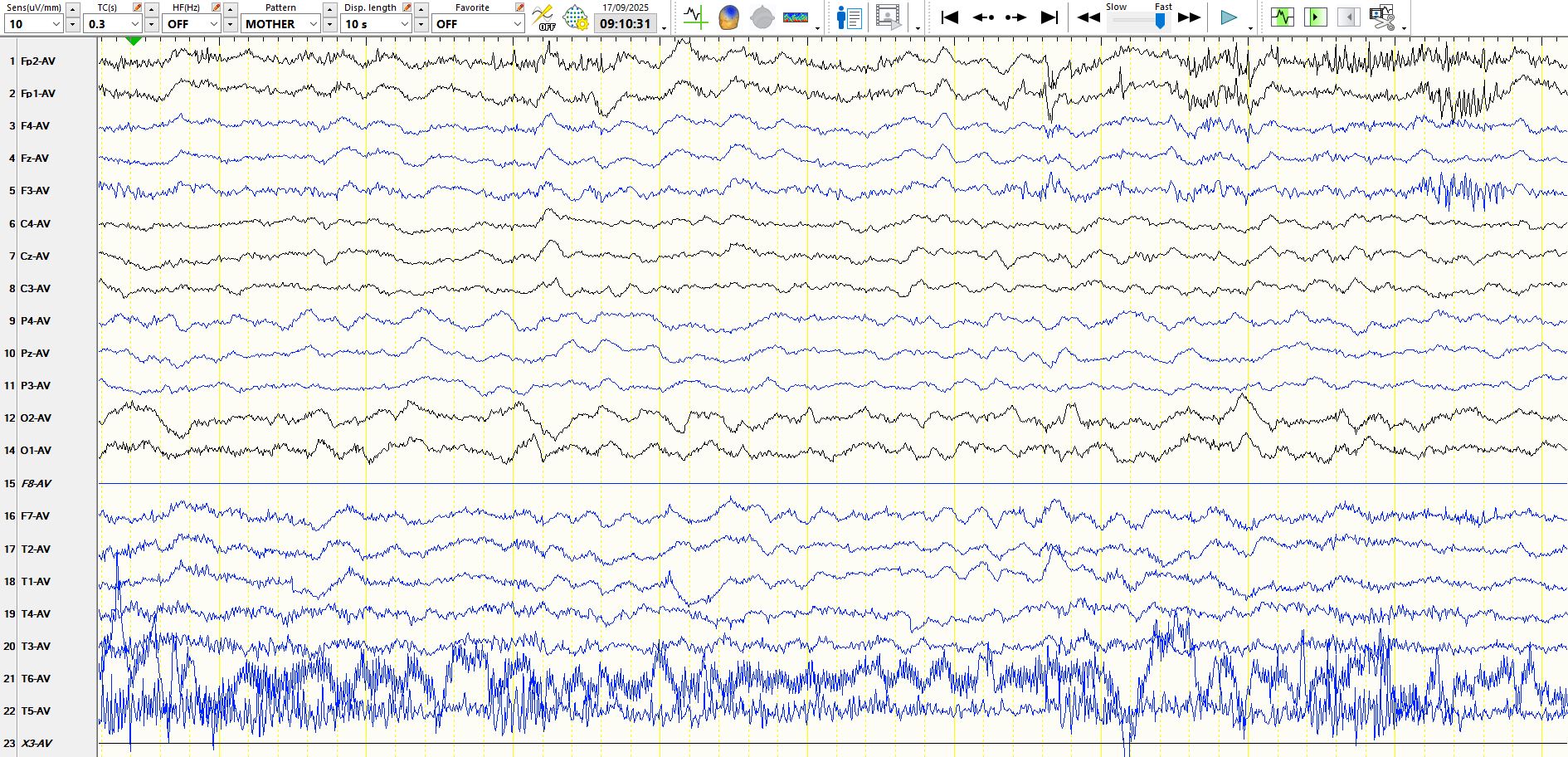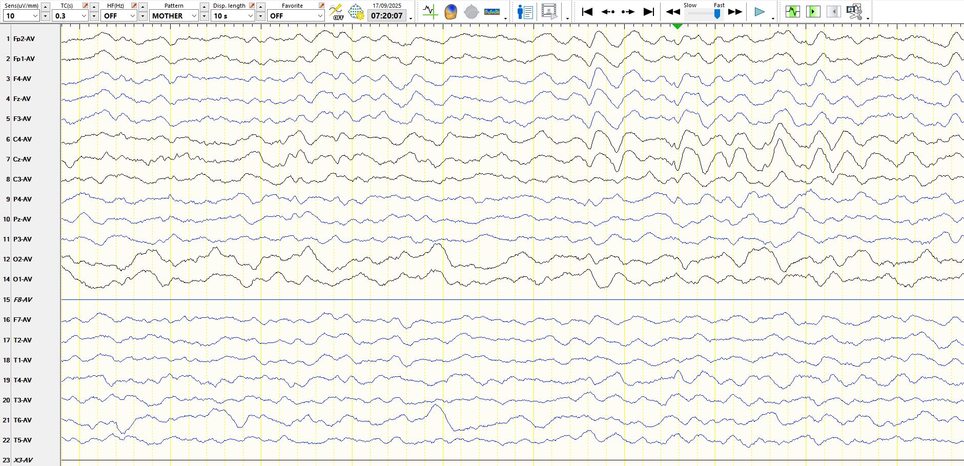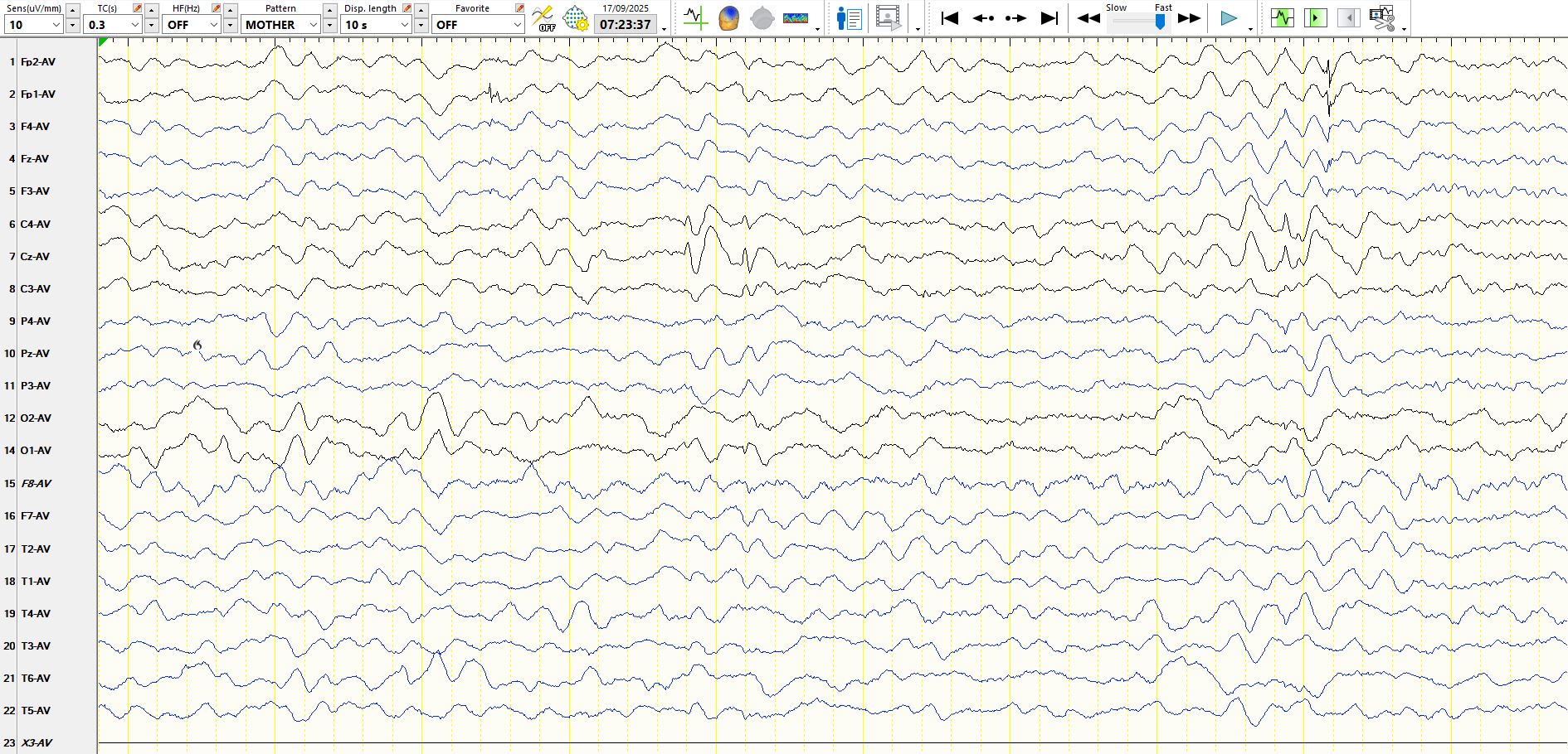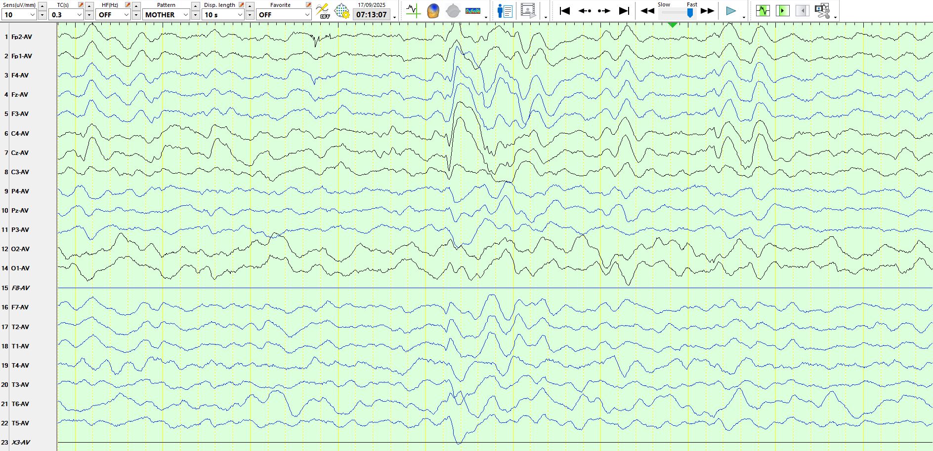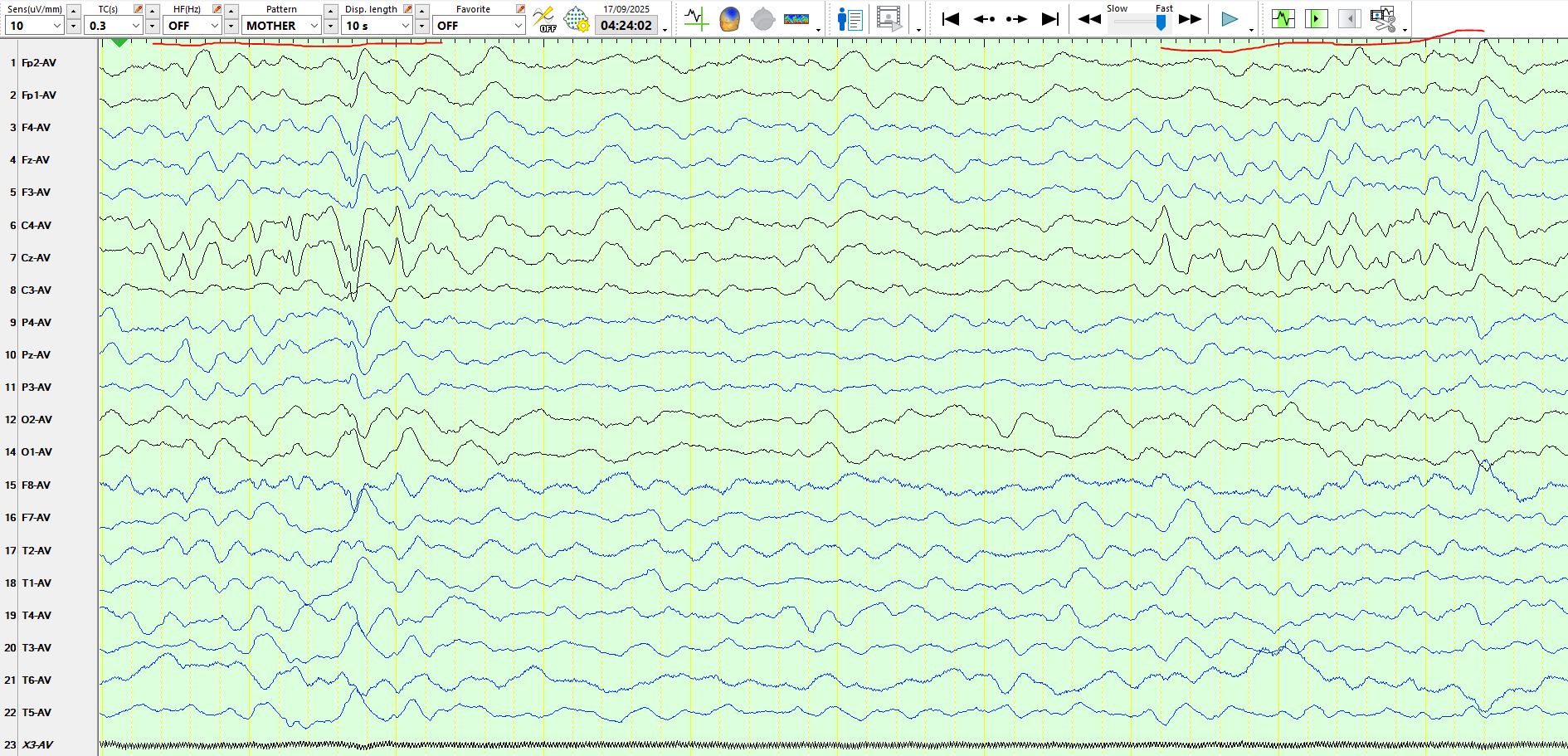 The EEG is normal during sleep. The apiculate waves represent vertex waves.