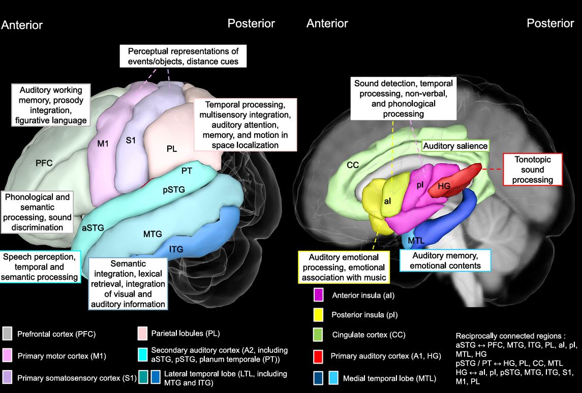 The precise physiology of these extra-temporal auditory auras is unclear although one could speculate...Remember that "seizure onset zone" is a construct and that seizures need to be considered in respect of systems that are involved at onset and during the evolution of seizures