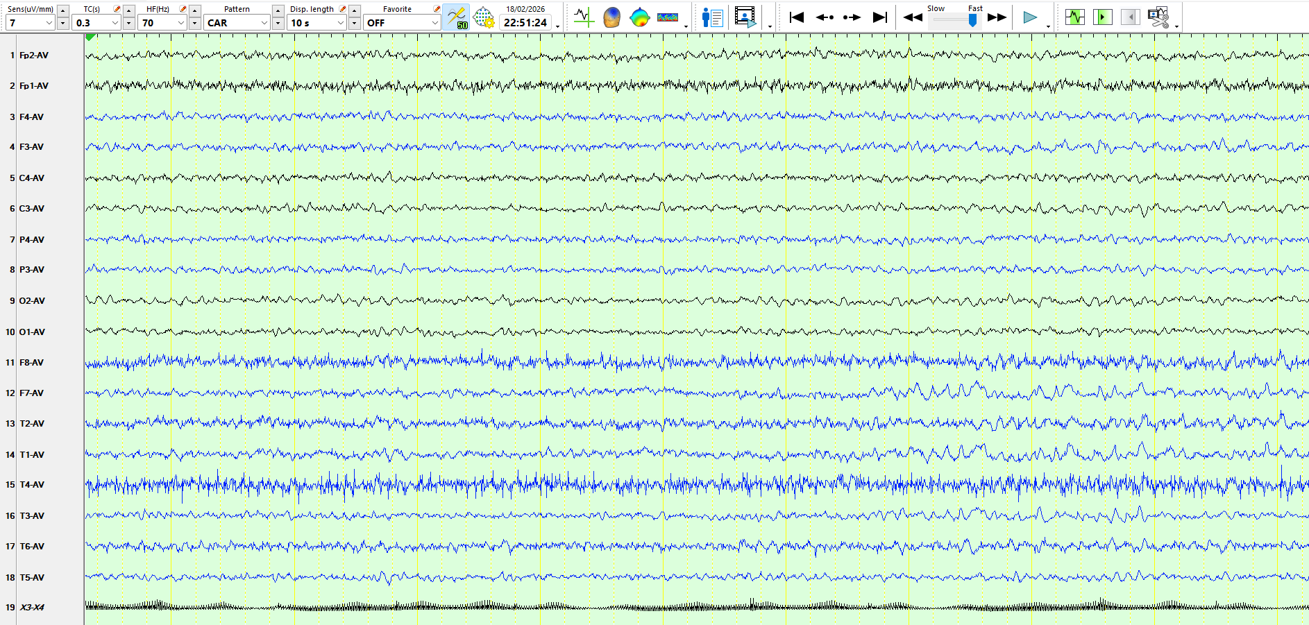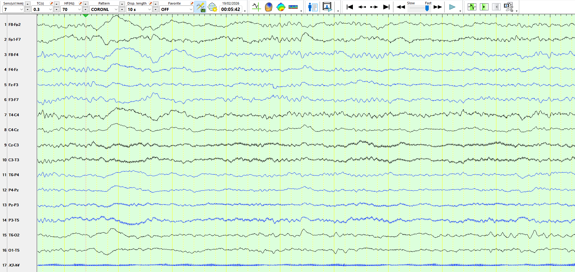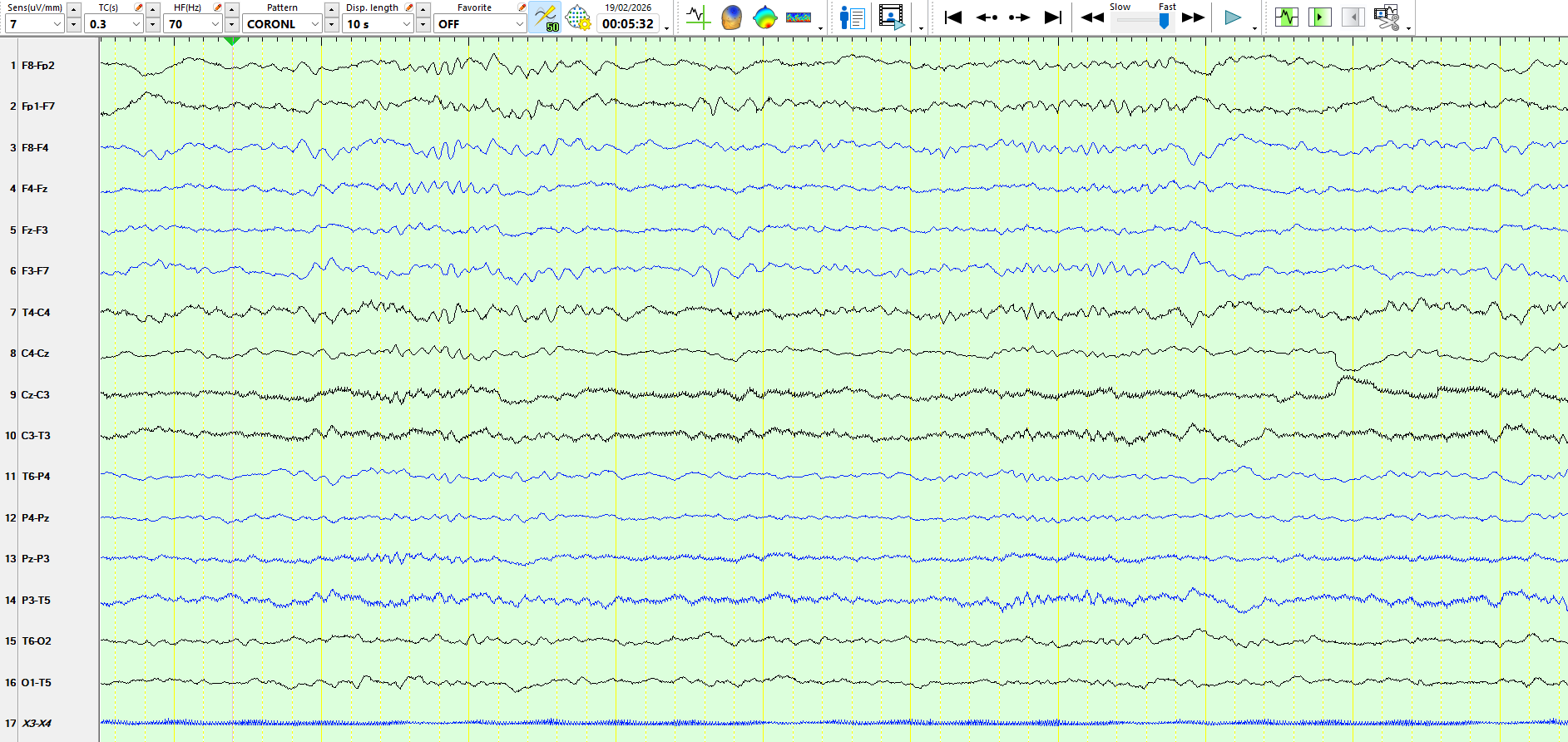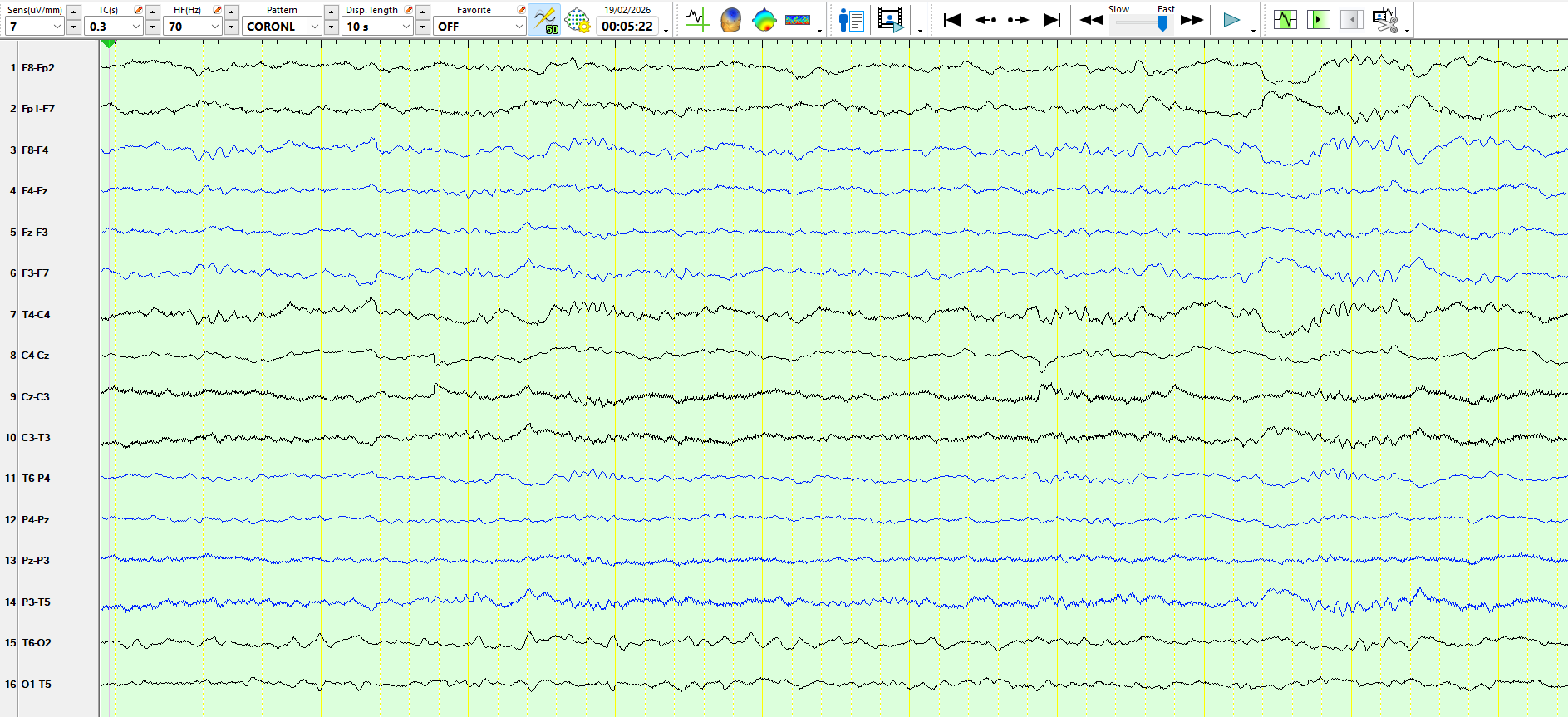 The following three pages represent the above waves on a coronal montage: