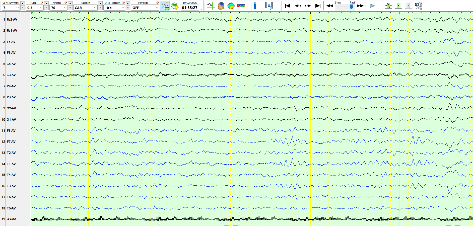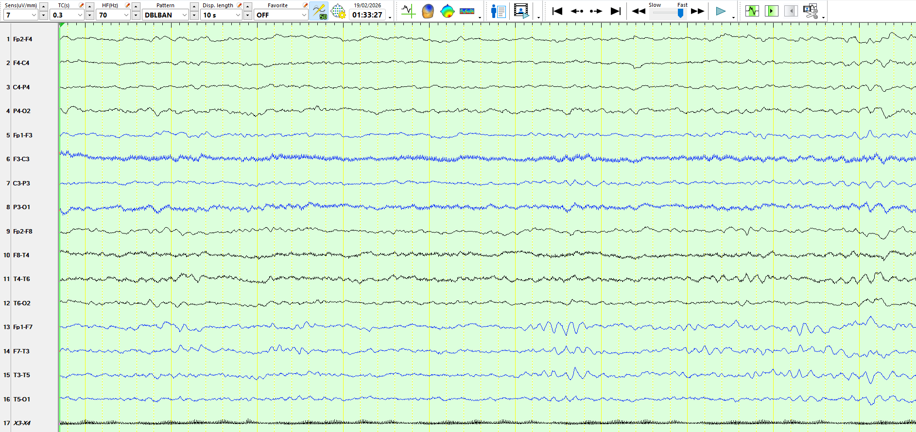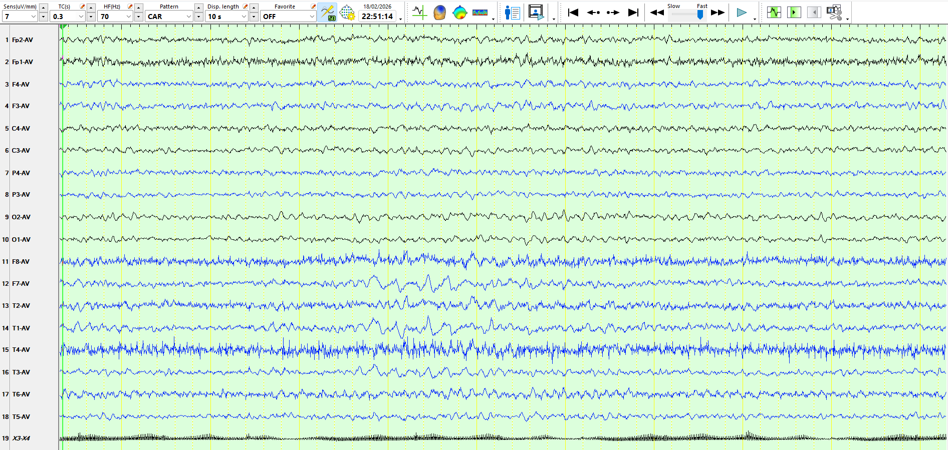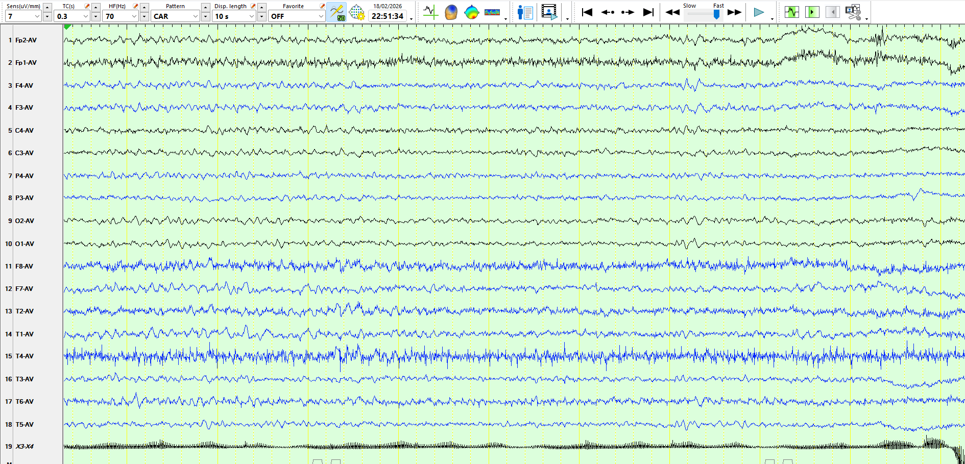 The following three pages represent the above waves on a coronal montage: