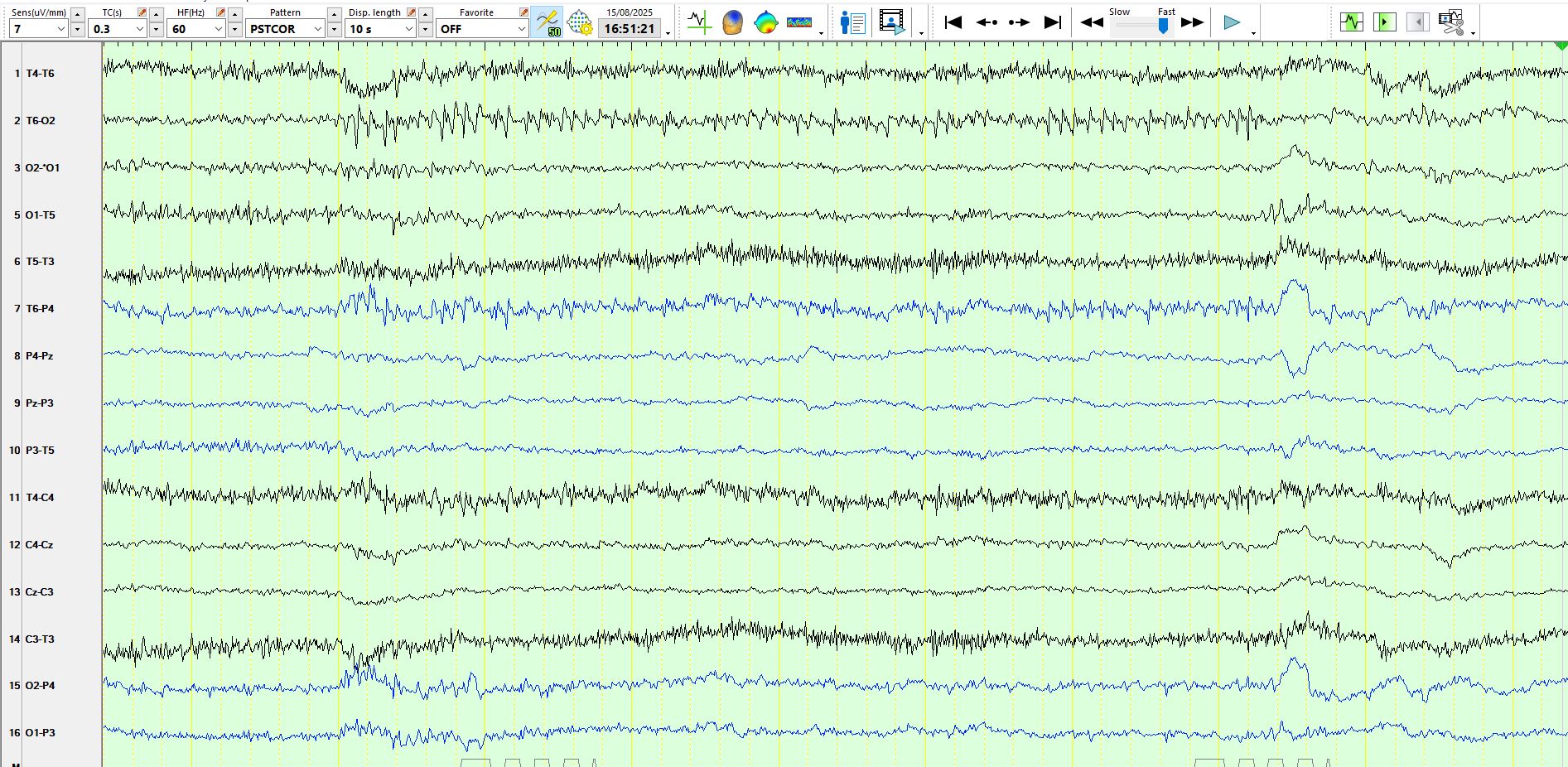 The following two pages demonstrate the same 10 seconds on two different montages, namely the bipolar and the referential (figure 11):