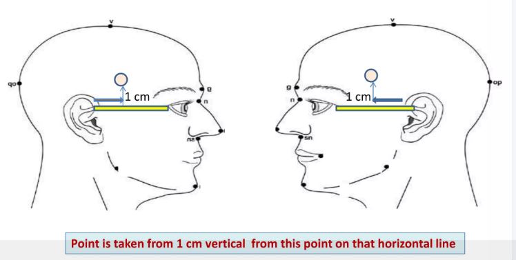 The following picture from this publication provides a good idea of how low "inferior temporal electrodes" need to be compared to F7 and T3 (the latter is labelled as F9 below). You may notice that T9 is lower than T1 would be if it were to be placed on the individual below. I prefer M1/M2, which are virtually identically located to T9/T10, to T2/T1, but there is no difference in yield. It is probably quicker and easier for a technologist to place M1/M2. The mandibular notch electrode is placed in front of the ear, just below the zygomatic arch, within the mandibular notch. This is also the surface marking for the insertion of sphenoidal electrodes, which are directed towards the foramen ovale. These are little used.