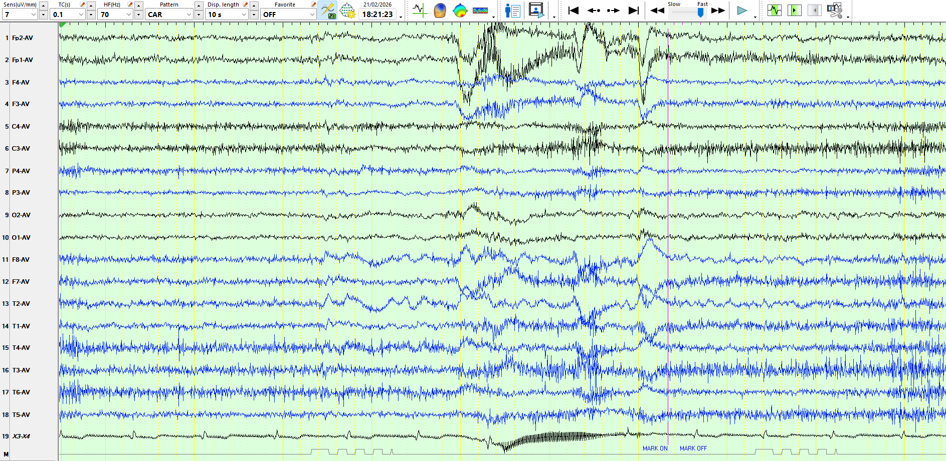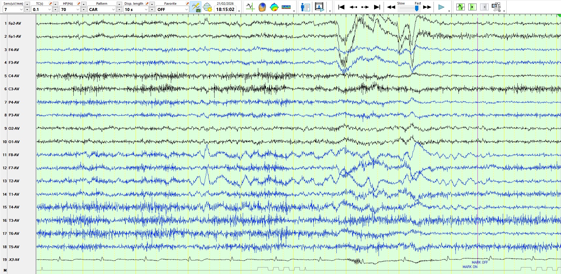 2. Theta and delta waves at M2-F8 (right inferior, anterior temporal region)